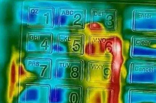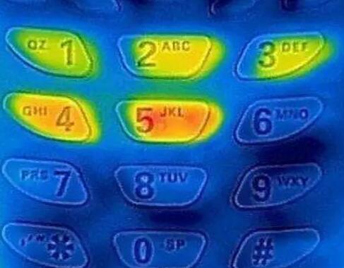 2普通材質(zhì)的鍵盤大家在按下數(shù)字之后,鍵盤的表面會因溫度的不同而產(chǎn)生顏色深淺不等的印記,利用熱感應(yīng)設(shè)備可以清楚的分辨出您的密碼順序。金屬鍵盤就是為了防止讓犯罪分子有機可乘而設(shè)計的,金屬鍵盤的特點是技術(shù)導(dǎo)電率高,溫度變化快,就算有人用熱感應(yīng)設(shè)備拍下照片,也很能根據(jù)顏色的深淺來判斷數(shù)字的順序,以達(dá)到防盜的目的。